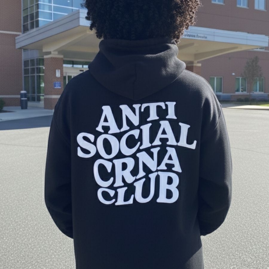 The front features clean, tonal embroidery that reads “My CRNA School Emotional Support Sweatshirt”, subtle, trendy, and (unfortunately) painfully accurate. On the back, matching “In My Anesthesia Era,” giving it that minimalist, aesthetic look CRNA students love.
